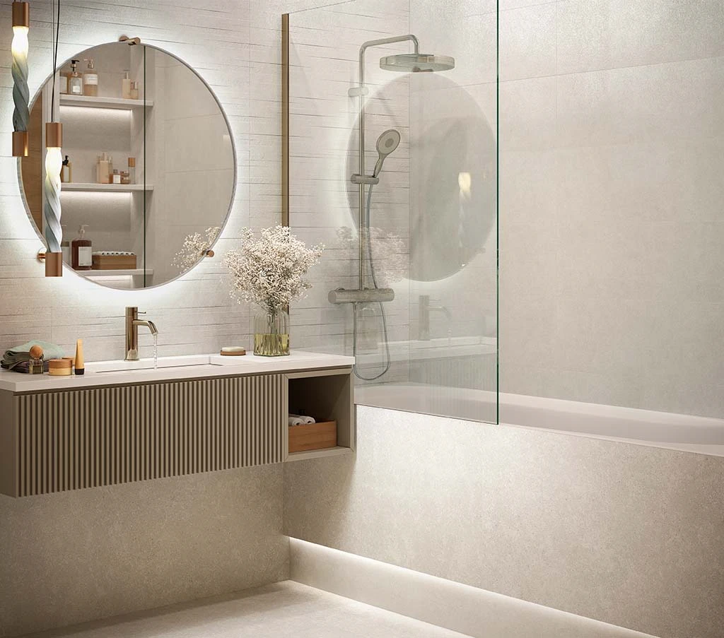 Плитка Polar наполнит помещение мягким, отраженным светом, придаст ему покой и умиротворение, а кроме того, увеличит его за счет визуальных эффектов.