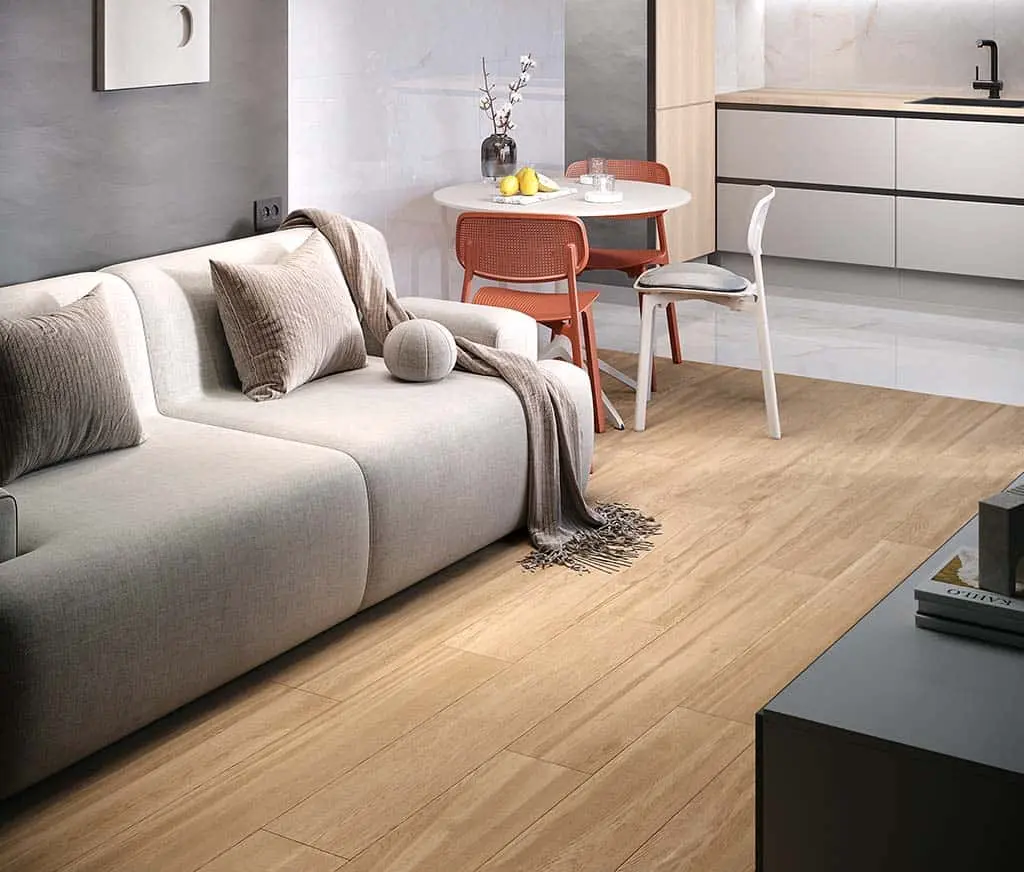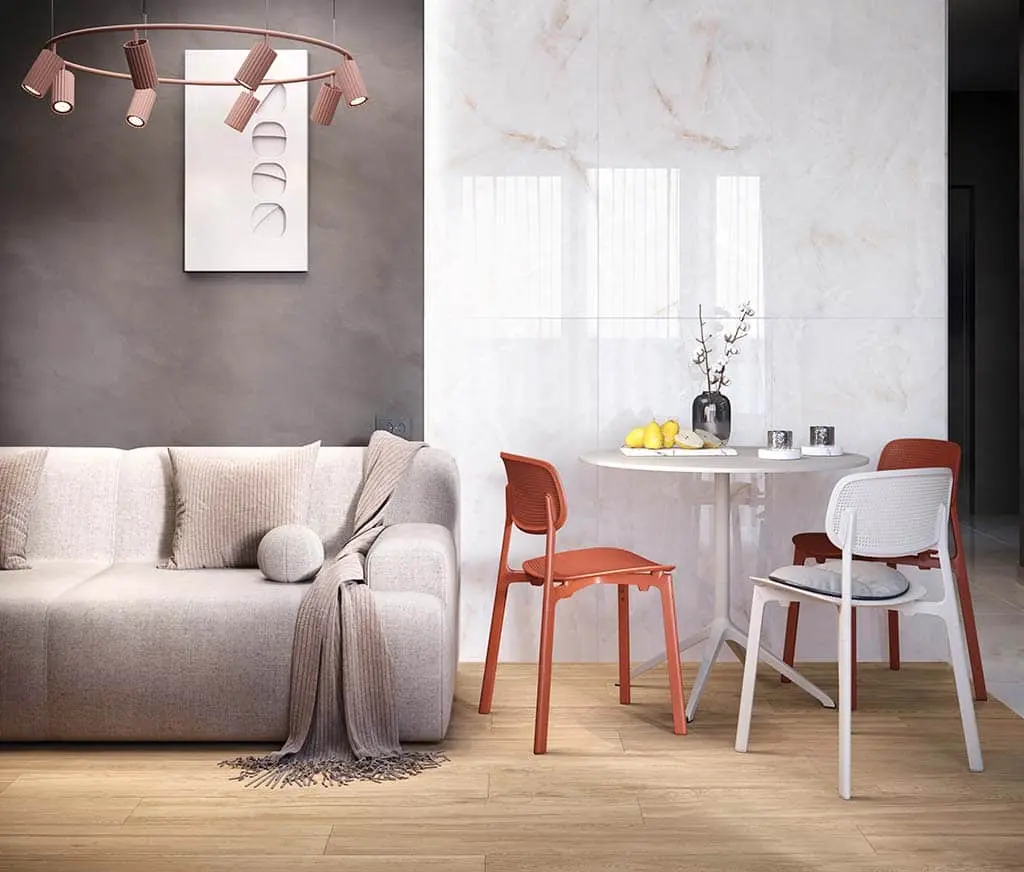 Керамогранит отлично подходит для отделки кухни, туалета, ванной, прихожей, гостиной или спальни. Плитка может быть уложена на стены и пол, а кроме того, использована для балконов и лоджий. Светлый, нейтральный тон керамогранита позволит легко вписать его в разные стили интерьера. Он будет одинаково выигрышно смотреться в неоклассике и в скандинавском стиле, в минимализме и в лофт.