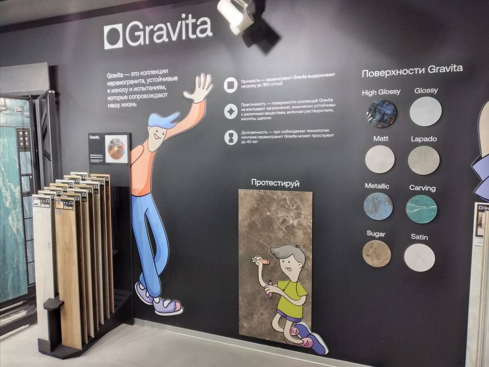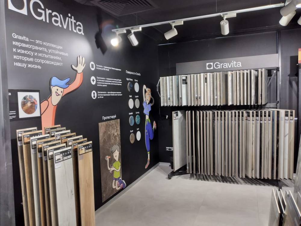 Gravita обустроила новую бренд-зону в большом магазине облицовочных материалов «Плитка Москвы» на улице Октябрьская 67. Компания является нашим торговым партнерам и коллекции плитки Gravita теперь представлены и в этой сети магазинов керамической плитки.