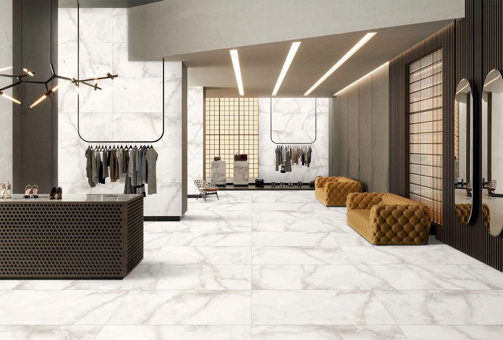 Керамогранит легко впишется в большинство стилей интерьера – в современные типа хайтек, лофт и эко, и в винтажные, типа классики или рококо.