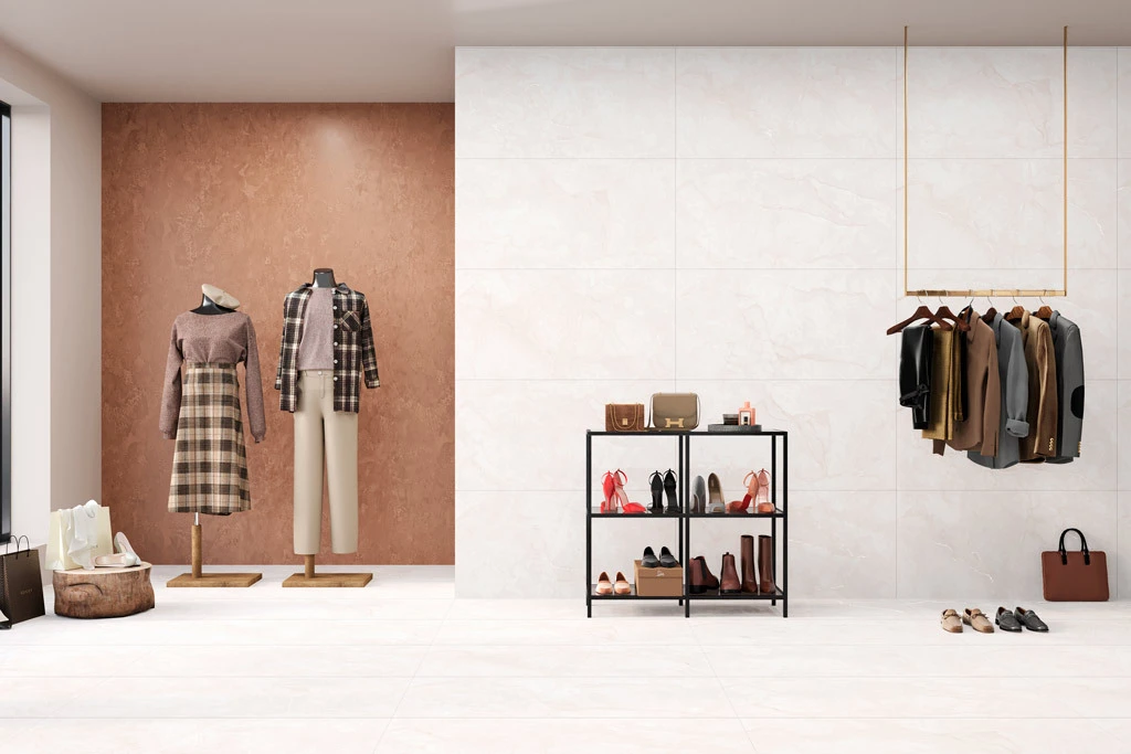 За счет спокойных тонов плитка хорошо сочетается с природным камнем, ониксом, бетоном, тераццо, деревом, деталями интерьера из стекла, зеркал и металла. Возможность комбинации в дизайне теплого и холодного оттенков мрамора дает уникальную возможность создавать на основе коллекции контрастные интерьеры, обеспечивающие спокойную мягкость, уют и отражение света от полированной поверхности.
