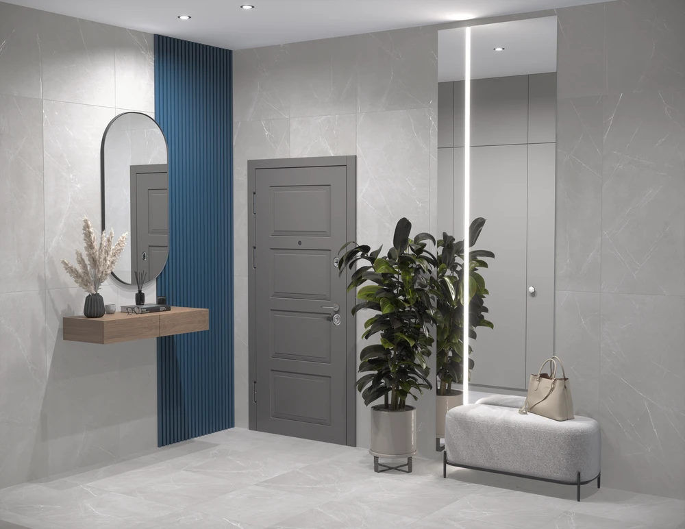 Нейтральный цвет легко сочетается с другими отделочными материалами – натуральным камнем, деревом, стеклом, а также сантехникой, мебелью и декоративными элементами интерьера.