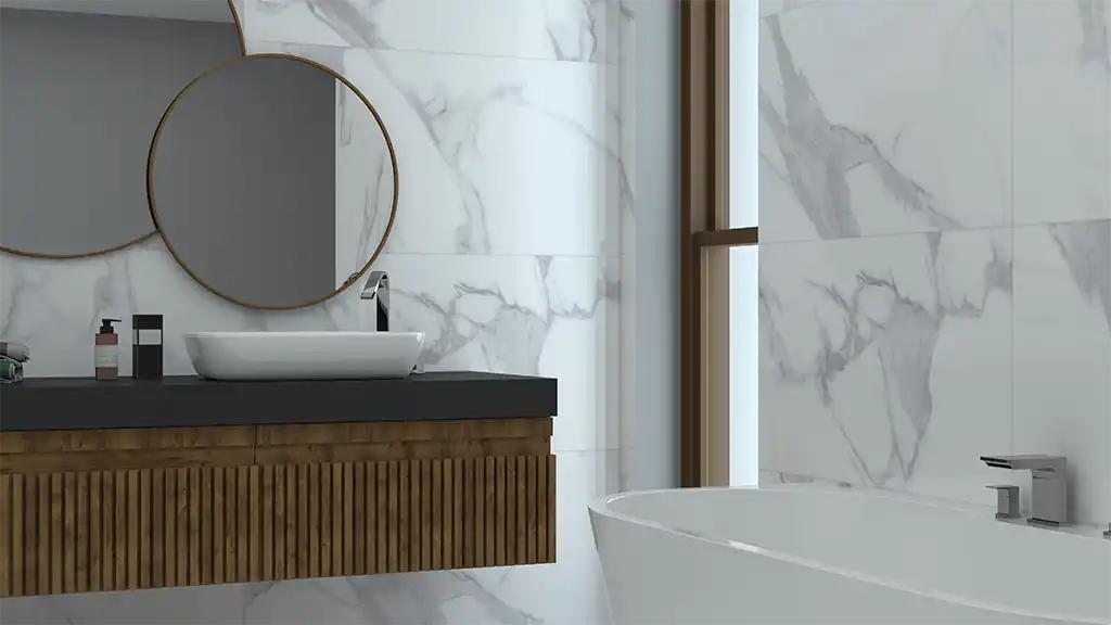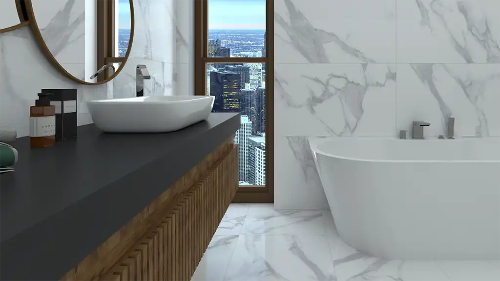 Новая коллекция керамогранита Statuario Rock с полированной поверхностью.