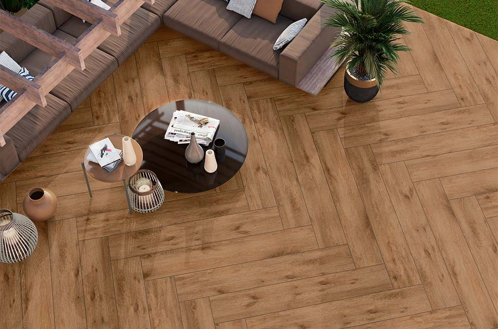Керамогранит с текстурой дерева — отличная альтернатива паркету. Он обладает высокой износостойкостью, водонепроницаемостью и превосходит паркет и ламинат по техническим характеристикам.