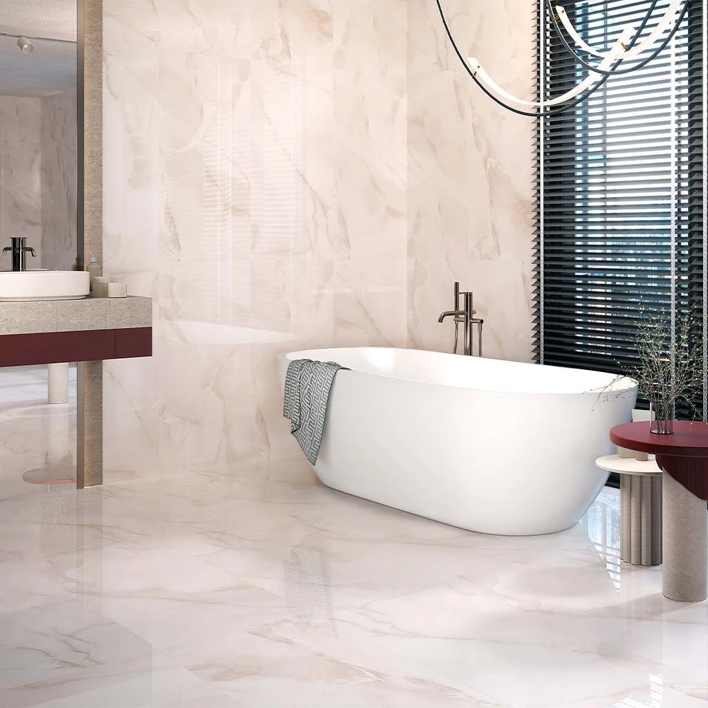 Помещения с такой плиткой будут светлые и комфортные, при этом лаконичные, а глянец визуально расширит внутреннее пространство.