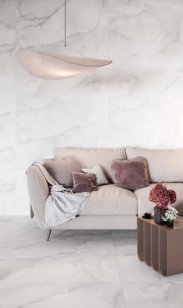 Такая плитка используется в любых функциональных зонах: ванне, туалете, кухне, прихожей, гостиной или спальне. Белый цвет расширяет помещение, а фактура мрамора подчеркивает благородство и утонченность дизайна.