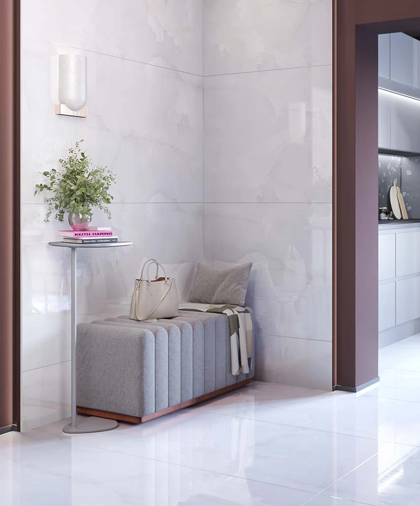 Новая коллекция керамогранита с имитацией текстур природного камня с полированной поверхностью Praga Onyx большого формата 80х160 см. Плитка имеет две палитры выполненную в сером и бежевом тоне. Коллекция Praga Onyx хорошо ложиться в современный тренд на рынке отделочных материалов по использованию керамогранита большого формата. Качество выполнения текстур природного камня оникс настолько высоко, что невозможно отличить от оригинала. Для дизайнеров большой формат керамогранита открывает возможность формировать практически бесшовные поверхности. Praga Onyx может использоваться в любой функциональной зоне помещения – кухне, ванной, туалете или гостиной. Стоит заметить, что плитку лучше использовать в достаточно просторных помещениях. Для дизайнеров это открывает большие возможности по созданию необычных и ярких интерьеров. Натуральный камень светлых тонов легко вписывается в большинство стилей, как классических, так и современных, например в эко или скандинавский. Керамогранит Praga Onyx будет хорошо сочетаться с любыми материалами – мрамором, бетоном, деревом, кожей или стеклом. Теплые, спокойные тона, пастельная, приглушенная гамма создаст в любом помещении атмосферу уюта и спокойствия.