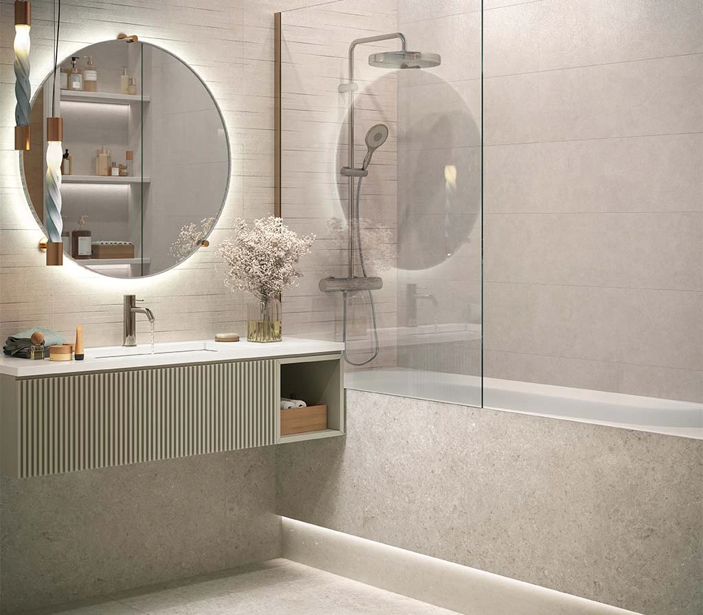 Бренд Gravita представляет коллекцию керамогранита Travertine с коэффициентом противоскольжения R10* и суперматовом, светопоглощающем покрытии low reflection matt*