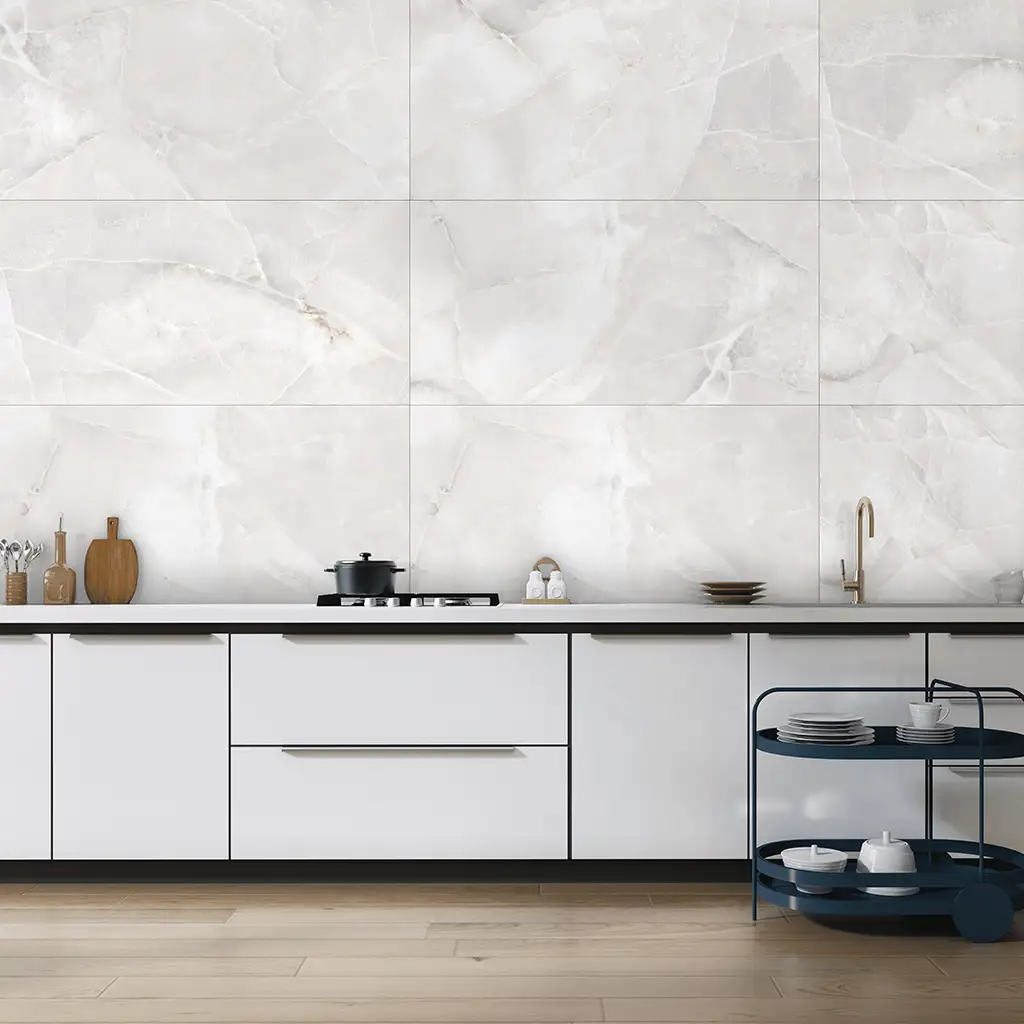 Спокойные светлые тона плитки хорошо сочетаются с большей частью стилей интерьеров, то классического до модерна, но подойдут и для современных, типа эко, скандинавского, минимализма или лофт. Керамогранит можно использовать для отделки стен и пола на кухне, ванной, туалете, прихожей, он будет выигрышно смотреться в гостиной и спальне. Gravita Veranda будет гармонично смотреться радом с мрамором и натуральным камнем, бетоном и стеклом, сантехникой, стеклянными и металлическими предметами в интерьере, лаконичной мебелью. Полированная поверхность керамогранита будет визуально увеличивать внутреннее пространство помещения, а рисунок полудрагоценного оникса создавать респектабельность и аристократизм.