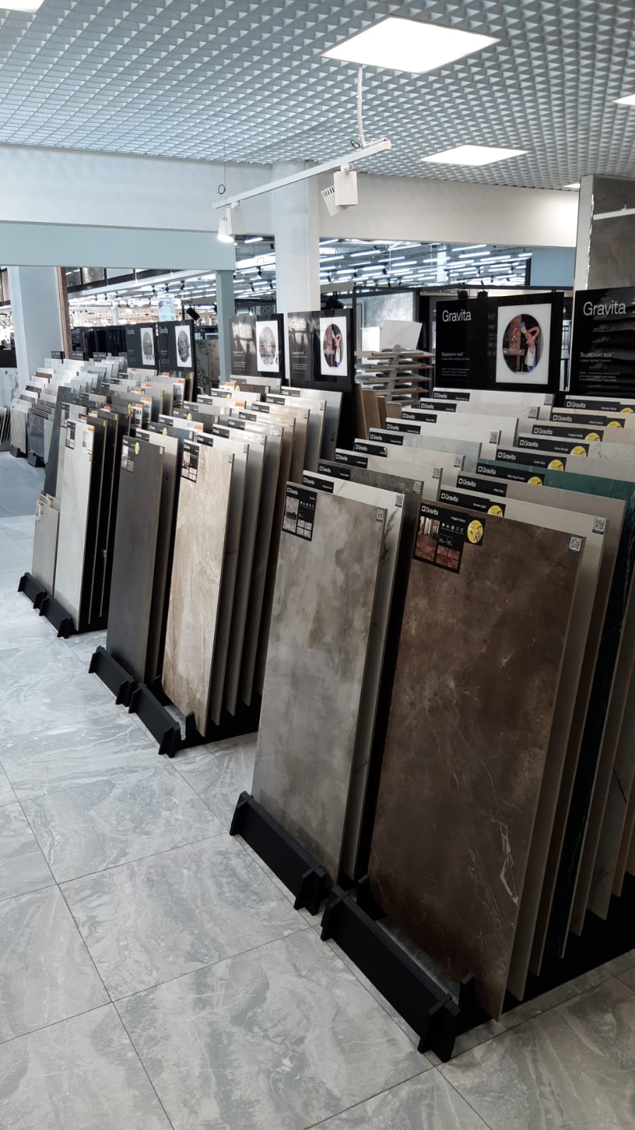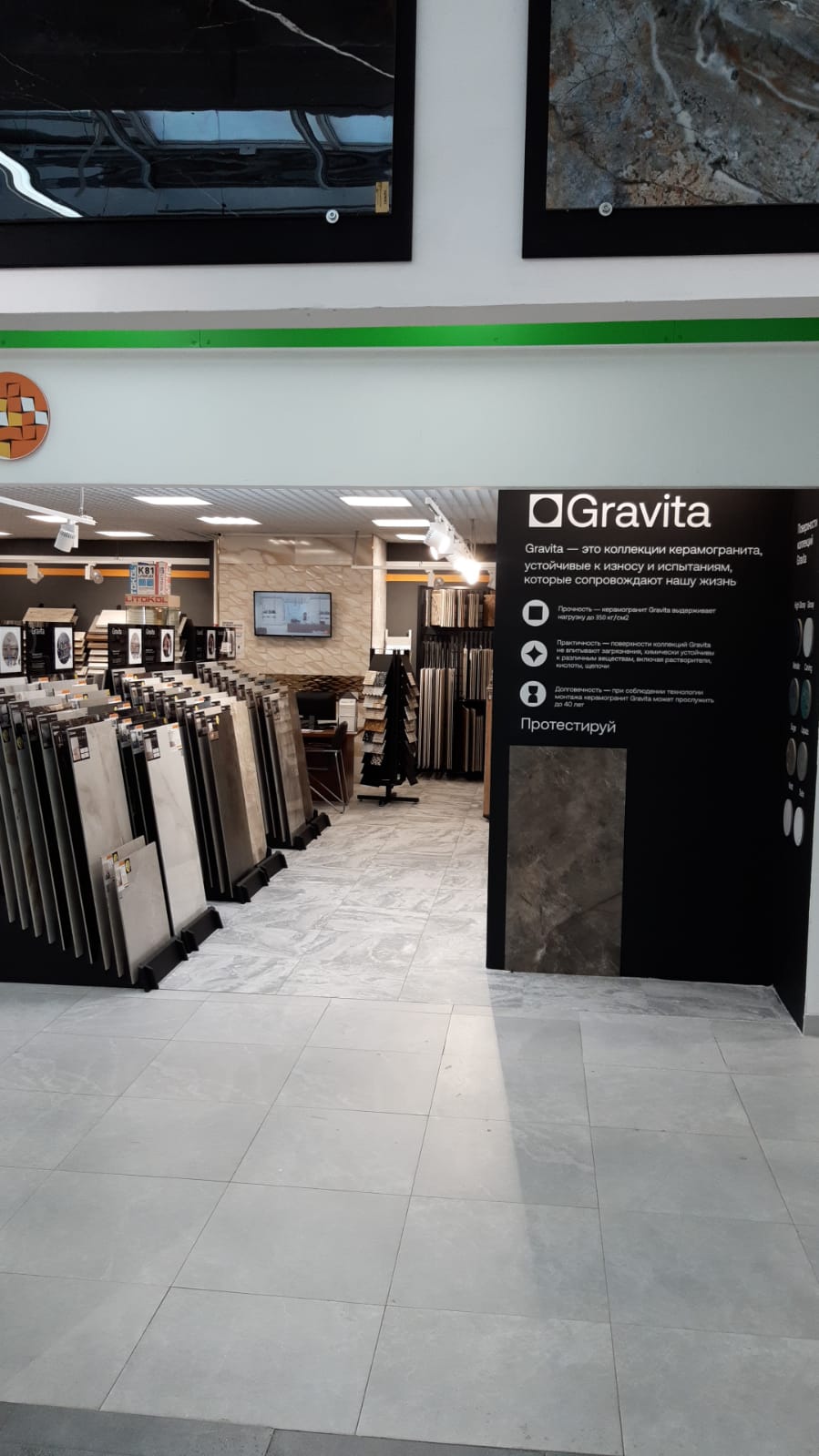 Покупали плитку для дачного коттеджа в торговом центре "Люблинское поле" на прошлой неделе. Купили в Гравите. Выбор плитки реально очень большой. Сами выбирали бы долго, спасибо продавцам помогли подобрать и на пол и на стены. Все есть в наличии, а не так, как в других местах, есть на стенде, а на складе плитки нет. Оформлено все красиво и удобно. Цены по нынешним временам нормальные. Сделали нам 3D проект бесплатно и быстро - с рендером за 35 минут уложились. Заказ мы сами забрали в тот же день со склада. В общем остались очень всем довольны, рекомендуем.